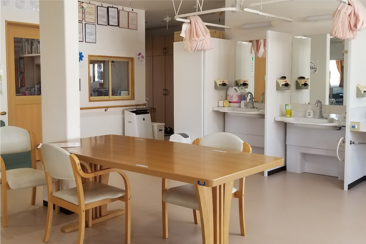 館内はオール電化仕様。一般浴、機械浴、シャワー浴などの設備も整い、介護スタッフも真心でサポート。全室エアコン完備しています。